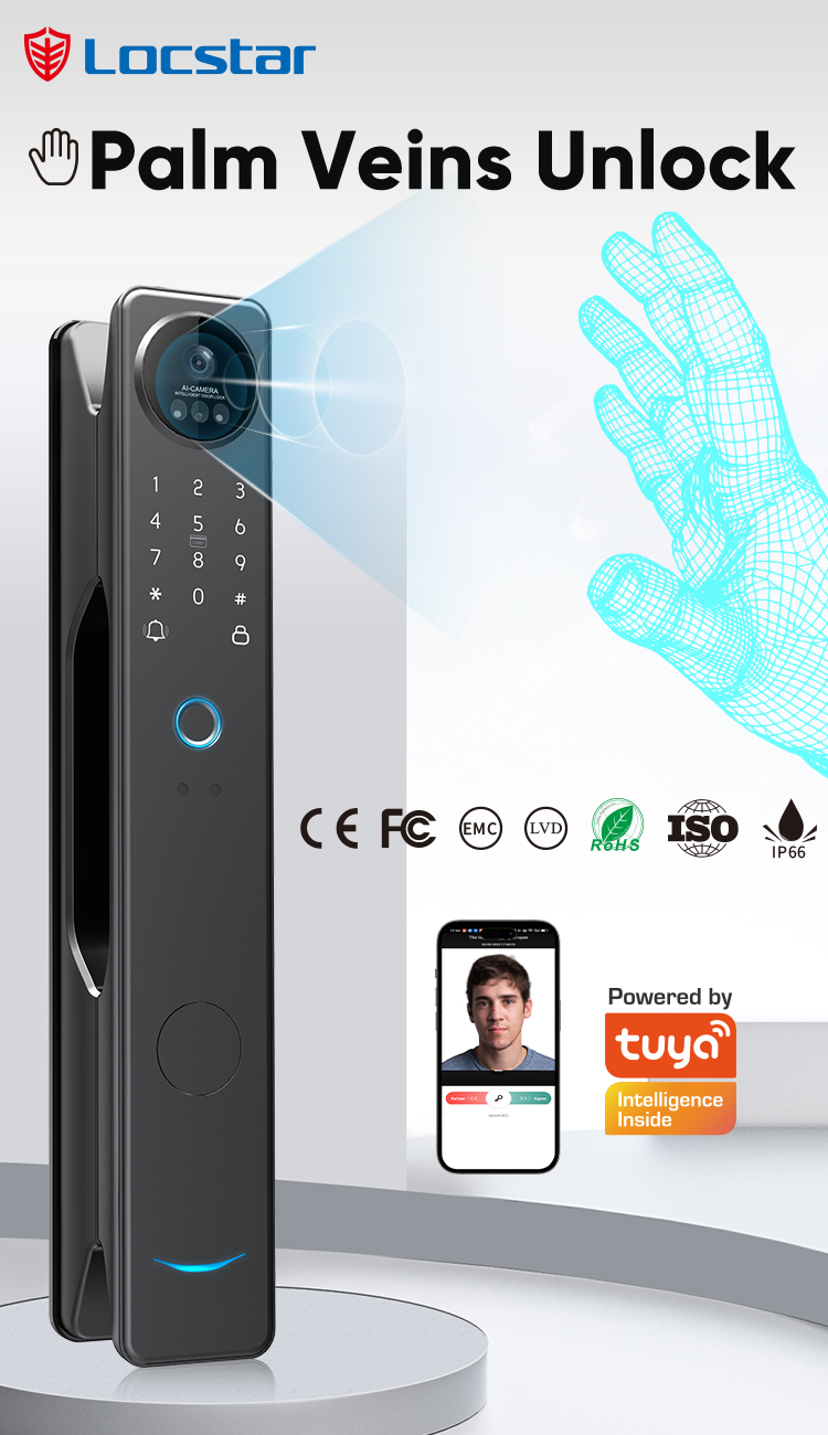 Locstar Fechadura Digital 3D Facial Recgonistion Palm Vein Wifi Smart Door Waterproof Lock with Intercom Camera and Fingerprint