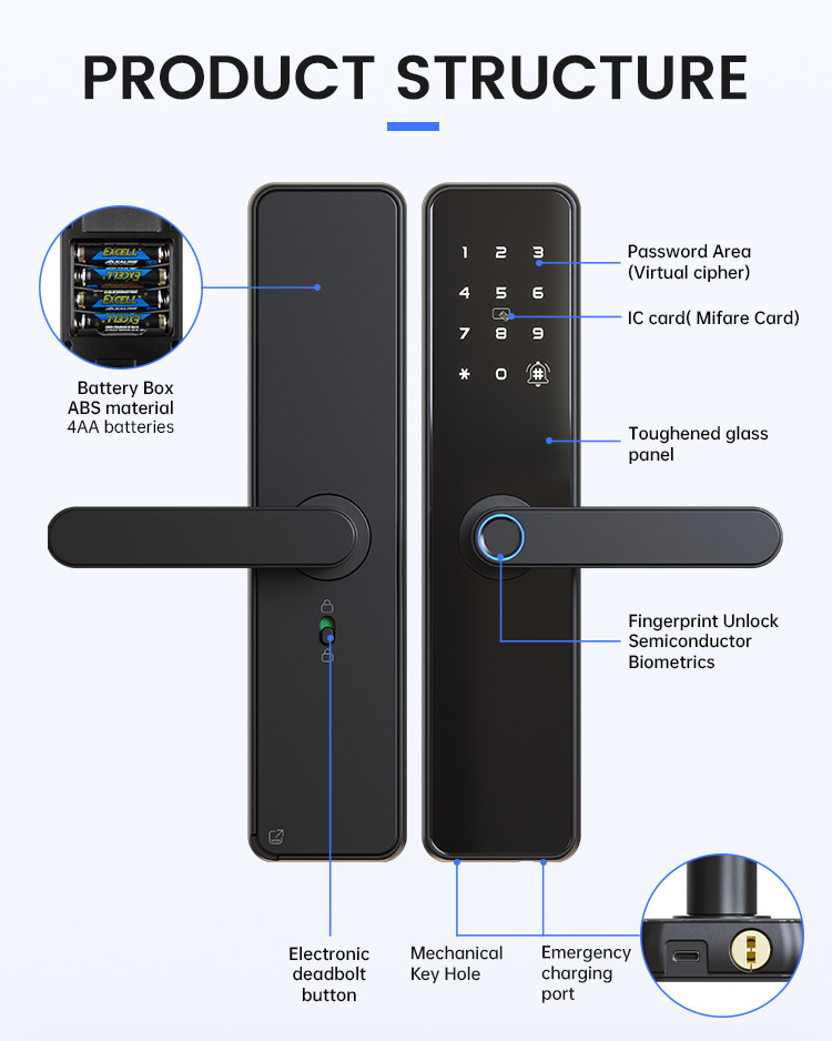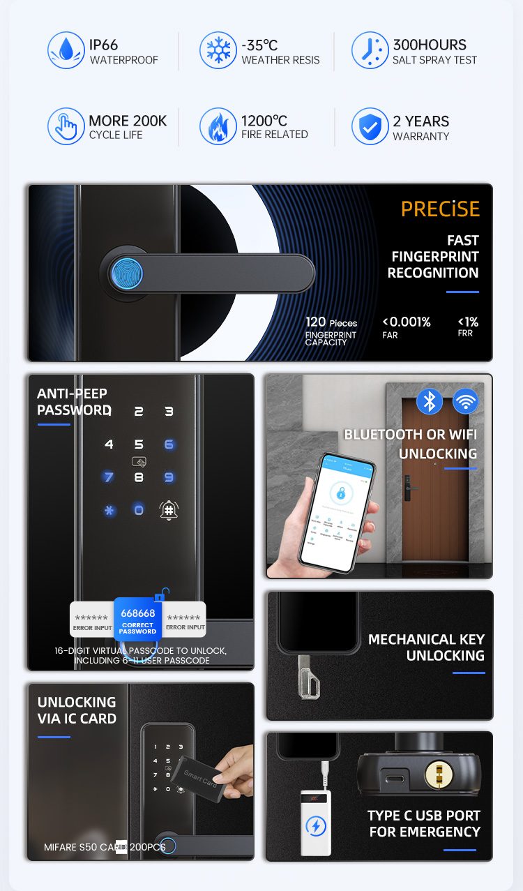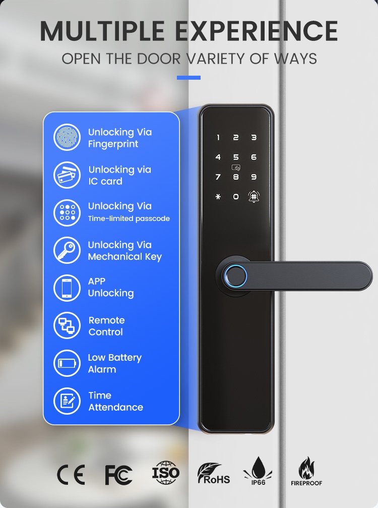 [Keyless Smart Locks] 5 unlocking ways: TTLock app+keyboard+fingerprint + smart card+Physical key